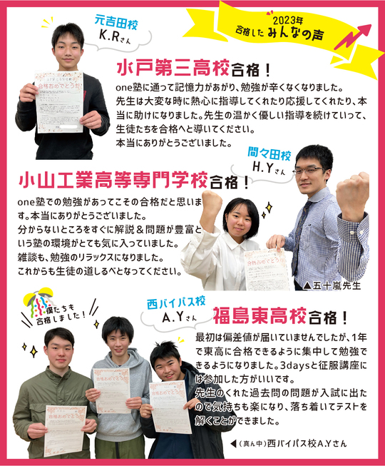 お住まいの地域の入試傾向の分析を行い冬期講習内容に反映。また模試受験も行い、選択教科以外の教科を含めた課題発見と克服を行い、入試本番でも最大限力が発揮できるように実力をつけていきます。