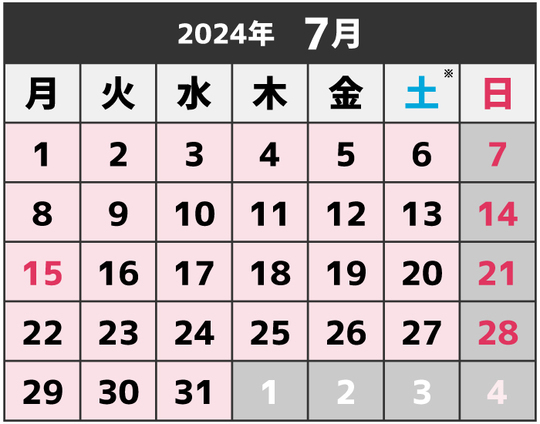 ※土曜日は休講の校舎もございます。また、校舎によって夏期講習スケジュールが異なる場合がございます。