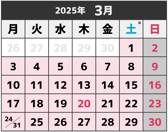 ※土曜日は休講の校舎もございます。また、校舎によって時間割が異なる場合がございます。
