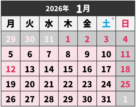※土曜日は休講の校舎もございます。また、校舎によって冬期講習スケジュールが異なる場合がございます。