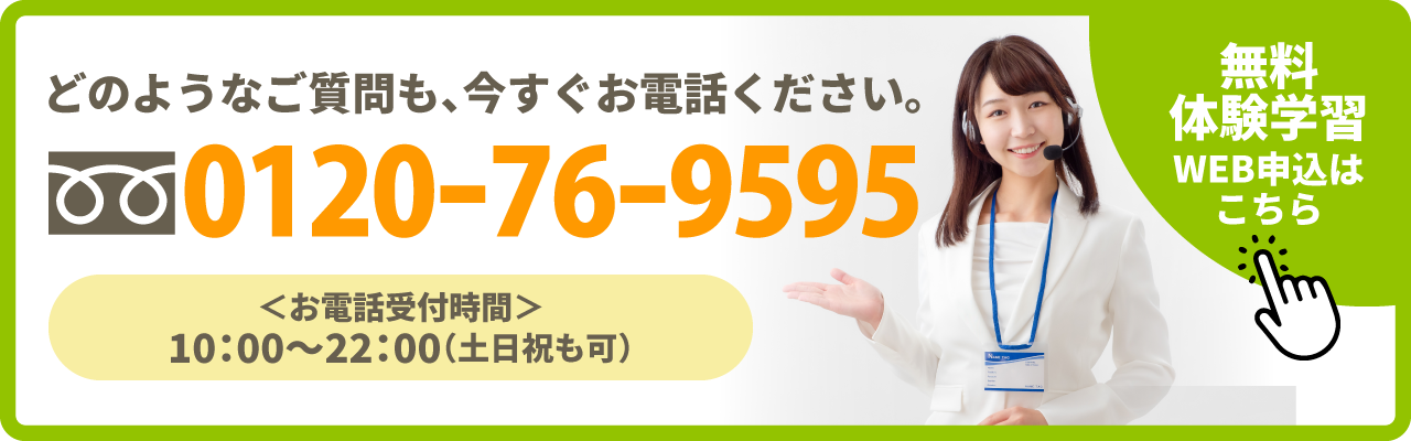 詳細はフリーダイヤル、またはお近くの校舎へお問い合わせください。