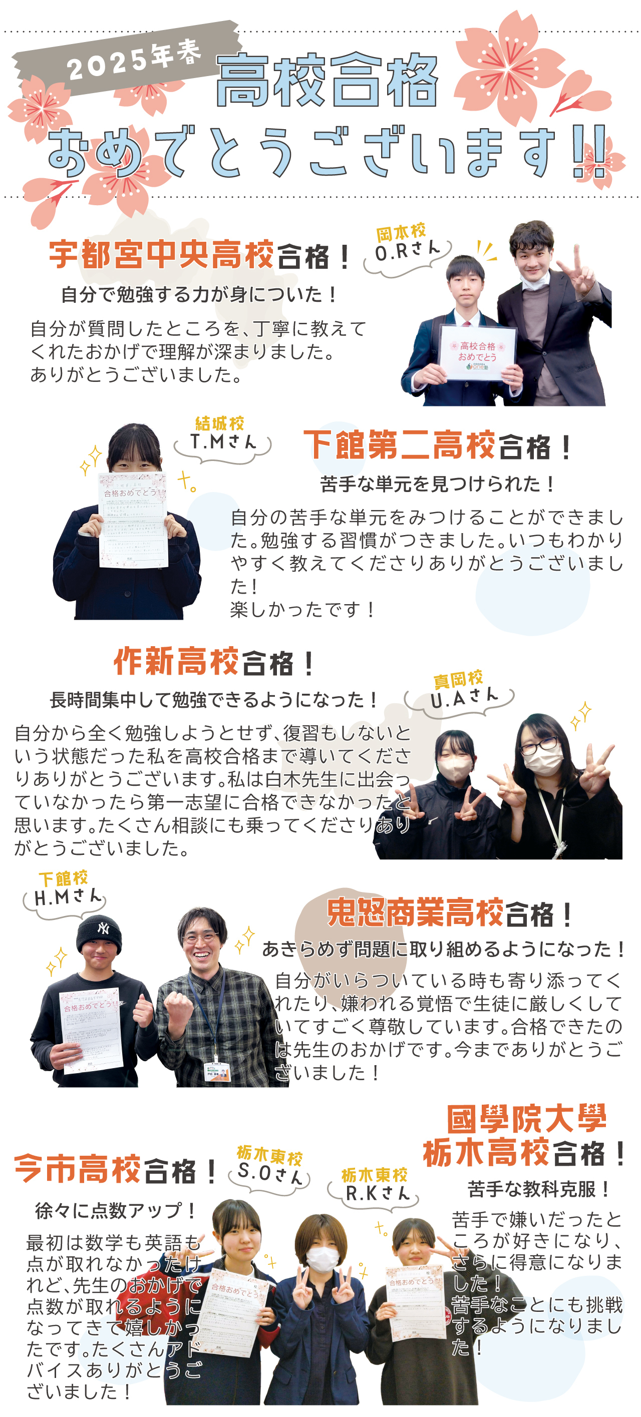 他の個別指導の講師よりも長年培った実績があります。春期講習も、お子様に合わせたプラン作成、授業、サポート全て同じ校舎長が担当します。