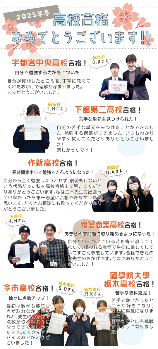 春休み中は進学する高校の課題に取り組みつつ、苦手単元の克服と授業の予習を進めていきましょう!