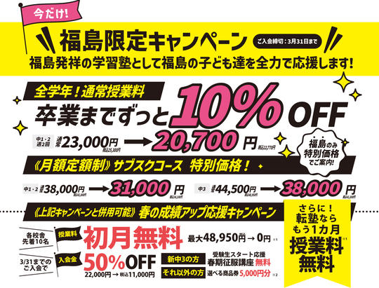 ※受験対策特別講座(征服講座・突破講座など)は別途費用がかかります