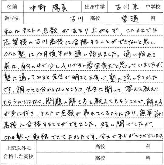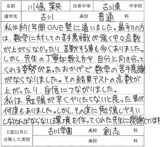 「大崎市で塾」「古川の塾」と言えば、「個別指導のone塾 古川校」と地域の皆様から言っていただけるよう日々精進して参ります。どうぞよろしくお願いいたします。