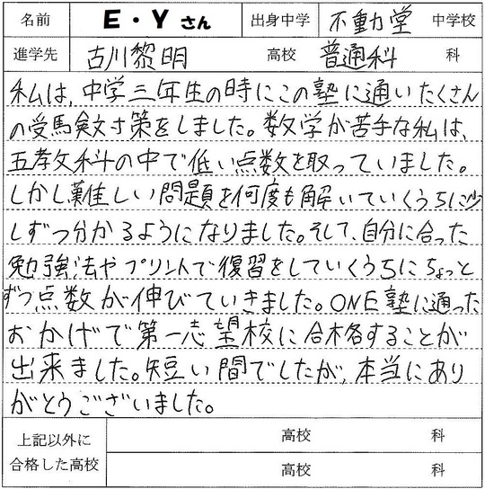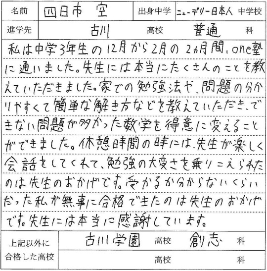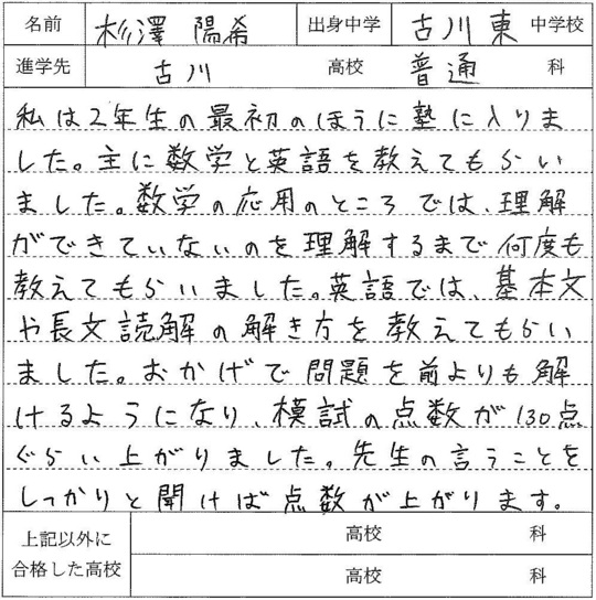 学校の授業の理解度を高めること、また高校受験・大学受験で第一志望校に合格することを目指し、日々お子様の学習のサポートをしております。