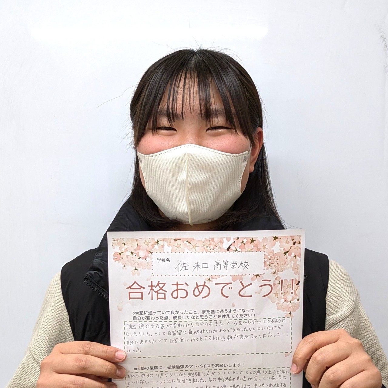 先生から教えてもらったことを活かして、高校生活を頑張りたいと思います!