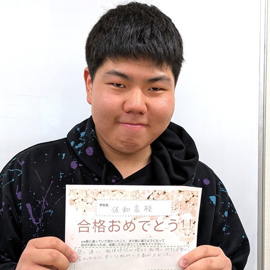 最初に受けたテストでの判定はE判定で、とても志望校に受かるとは思いませんでした。だけど塾に通ってから、先生も丁寧に教えてくれて、とても楽しく、コツコツ勉強している間にA判定になり、合格までもってこられました。ありがとうございました!