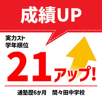 入塾してから受講教科の数・理・社のみならず全教科確実に成績UPしており、ご指導いただいた成果を実感しています。