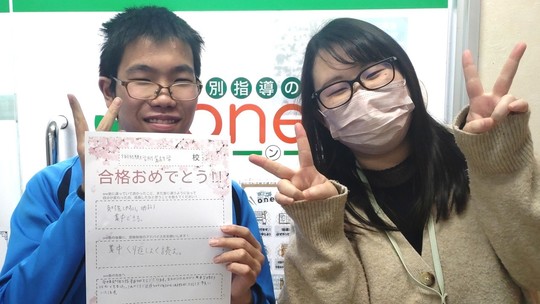 自分の分からないところ、できないところが明確になって、勉強の質が上がった!one塾に入ったことで、自分に足りなかったところが分かるようになって、勉強が楽しくなりました!今まで本当にありがとうございました!