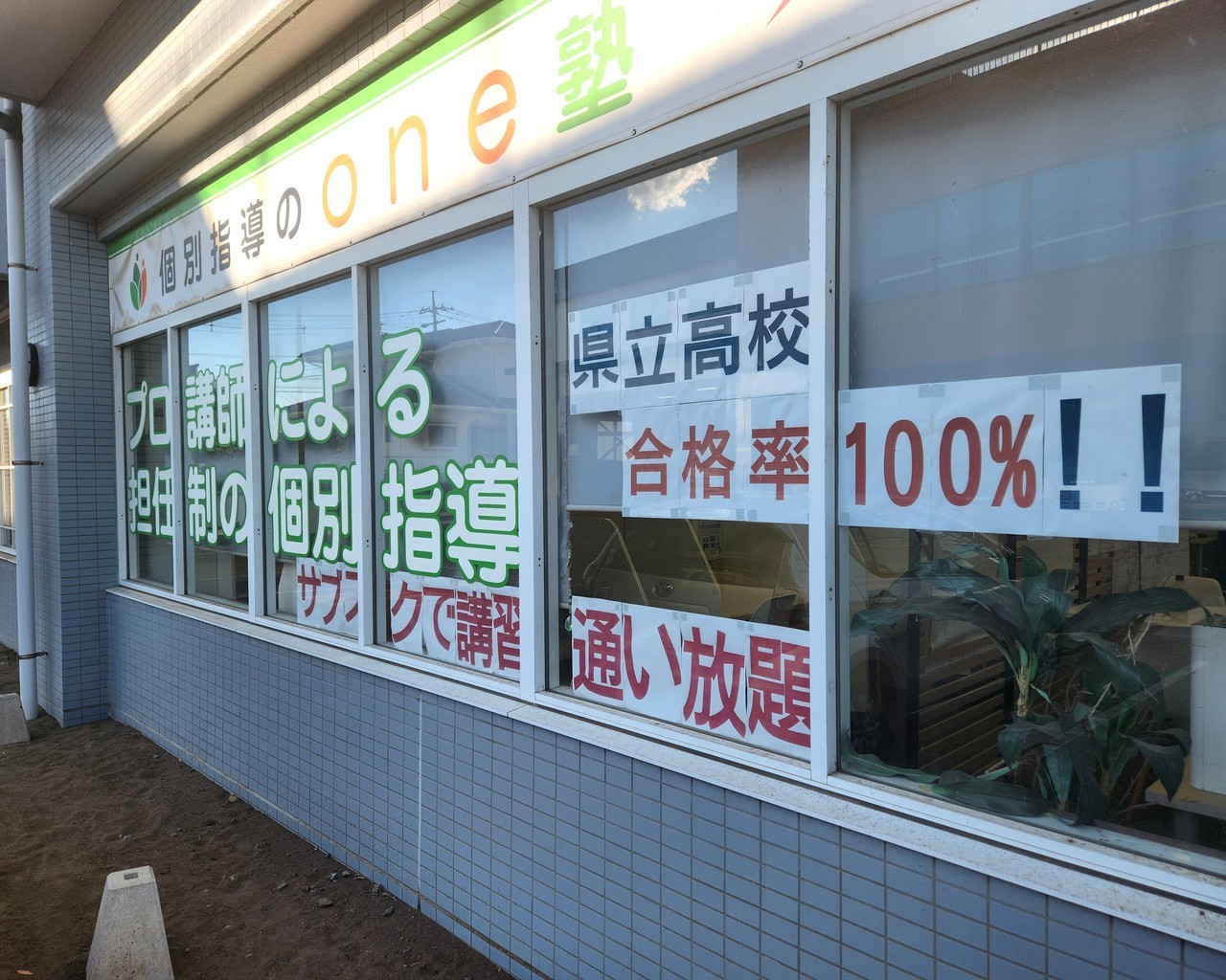 個別指導のone塾 小山犬塚校では、生徒の皆様お一人お一人の目標を元に課題を設定し、現状の学力やお子様の性格なども加味して自ら学習する力を育てるような指導を行っております。
