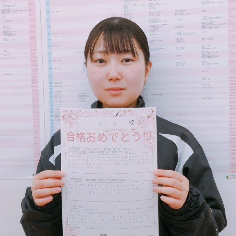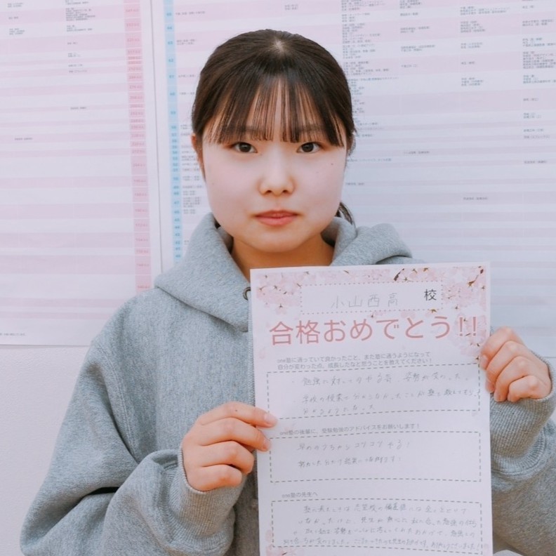 塾に来たときには志望校の偏差値に全く届いていませんでしたが、先生が熱心に私にあった勉強の仕方や取り組む姿勢を一緒に考えてくれたおかげで、勉強への向き合い方が変わりました。