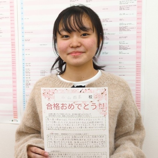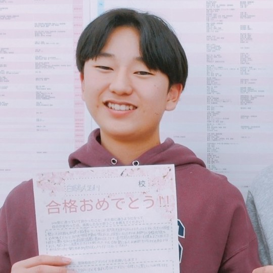 塾に来たときには志望校の偏差値に全く届いていませんでしたが、先生が熱心に私にあった勉強の仕方や取り組む姿勢を一緒に考えてくれたおかげで、勉強への向き合い方が変わりました。