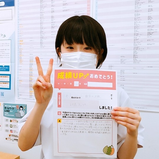 でもone塾に通って自習をして、勉強に対する気持ちが変わっていった気がします。これからも得意単元を増やして点数を上げていきたいです。