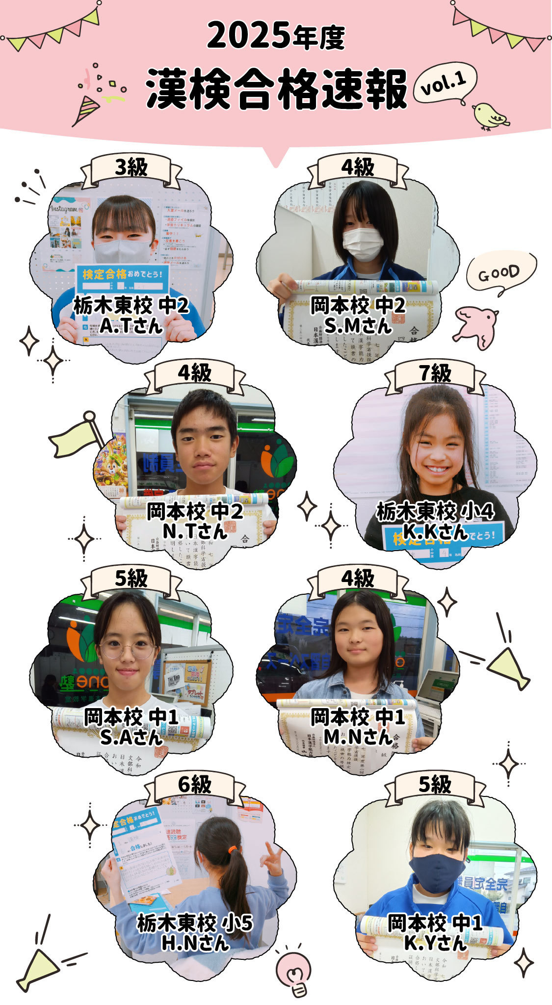 4級の漢字をずっと覚えておくことはもちろん、3級にも挑戦していきたいです。